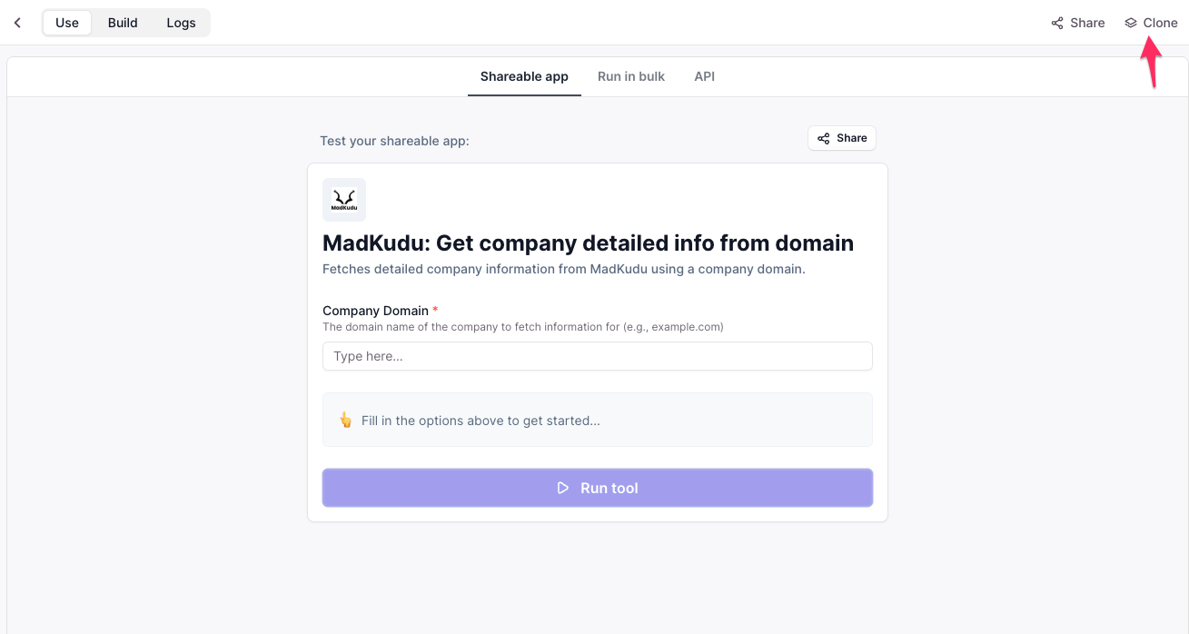You'll need to import individual Tools in Relevance AI that use MadKudu API.